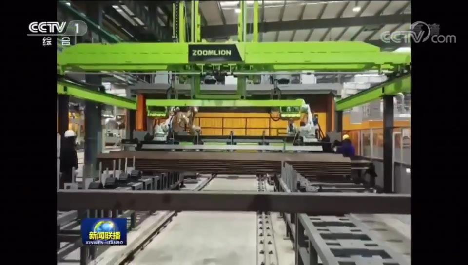 ▲央视新闻联播截图:中联重科汽车起重机发往全国各地