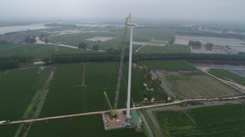 ▲中联重科ZCC9800W履带起重机在江苏风电场作业