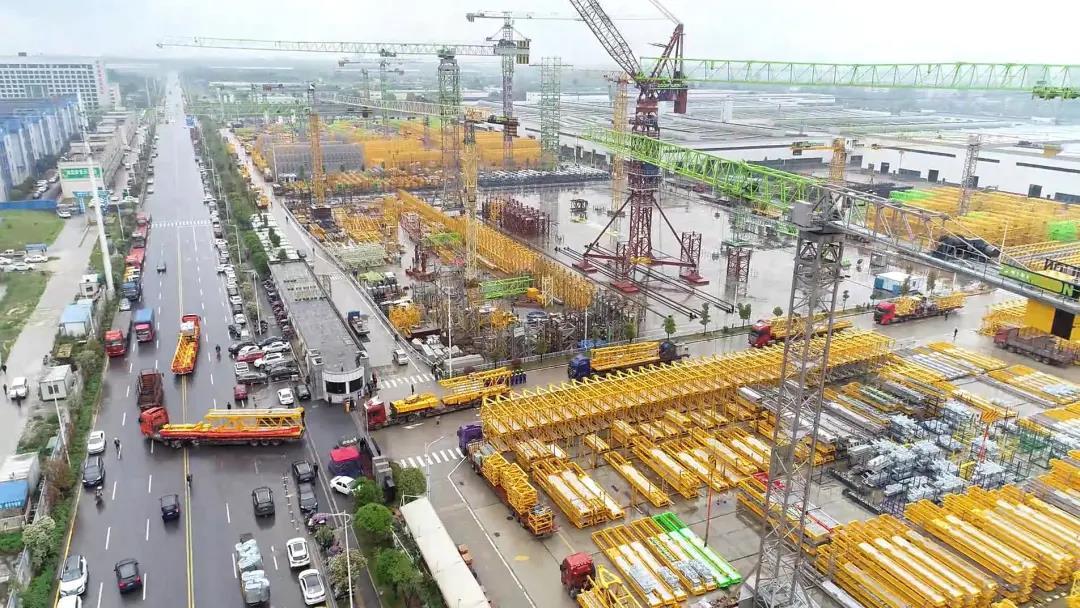 ▲中联重科T1200-64门架式塔机出口印尼发货现场
