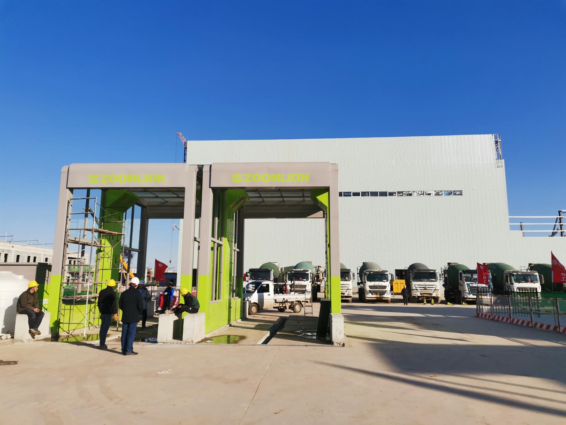 据介绍,中联重科为雄安二号搅拌站搭载的全自动除尘系统,可将传统搅拌站所有材料在料库内卸车后产生的粉尘吸走并进行过滤,回收作为辅助材料进行使用,下料后产生的粉尘和污水也可实现全面回收。国际先进的螺杆式空压机,分贝值较普通空压机降低30%,配置粉料低压输送系统,彻底解决散装水泥车自带的低压空压机在卸料过程中的噪音问题。由砂石分离装置、泥浆压滤系统、浆水回收系统组成的循环系统实现了废水废渣100%再利用,2台全自动洗车装置利用回收水,实现车辆进场、出厂全自动清洗,清洁进出,杜绝车身残留物对周边环境的污染。实现整个储存和生产过程的0排放,生产达到绿色无污染。
