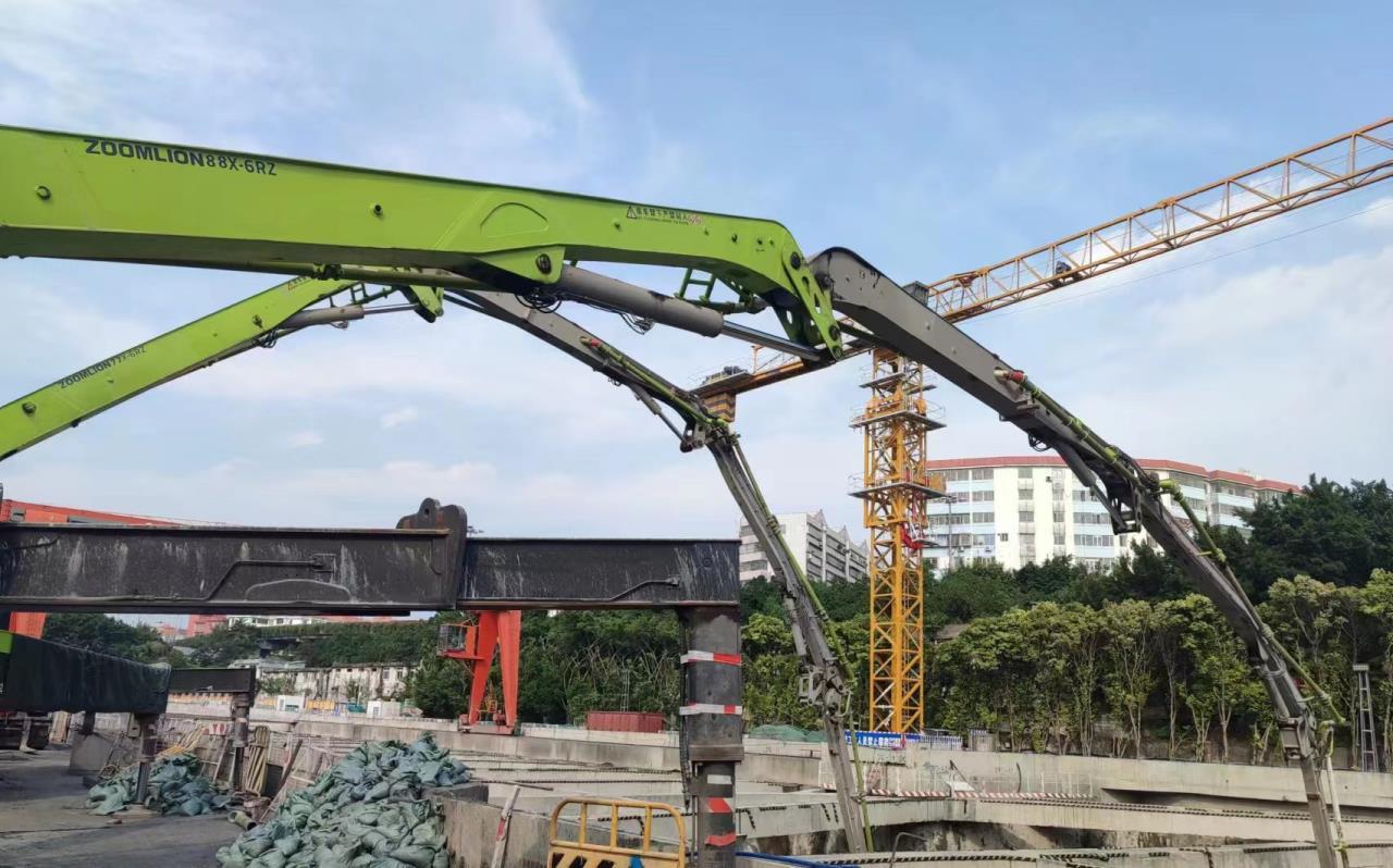 作为广州地铁集团“总部级”风险重点管控点之一,该站共需浇筑混凝土约10万方,为确保施工质量和施工进度,同时严格落实风险管控,项目方选用了中联重科“凌云”系列67米、59米长臂架泵车承担任务。