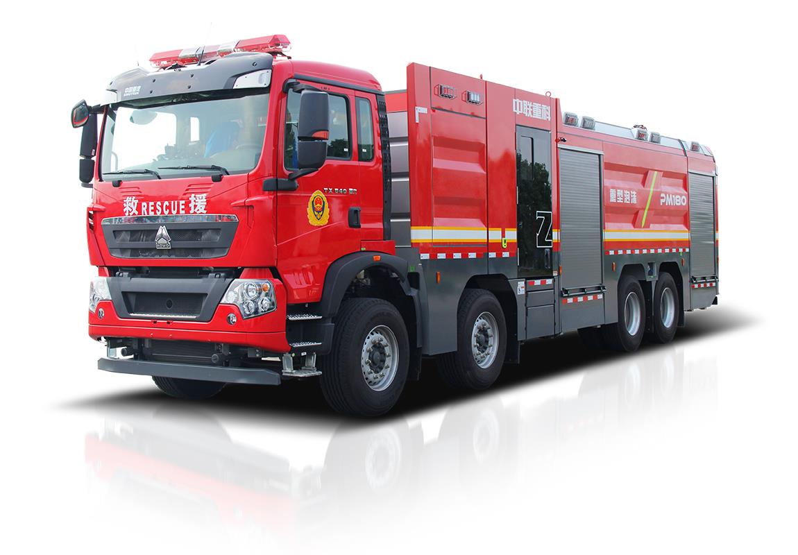 中联重科18吨重型泡沫消防车,结合国内外先进设计理念与消防实战需求创新设计而成。整车具备多项安全保护措施,技术与性能参数处于国内先进水平。