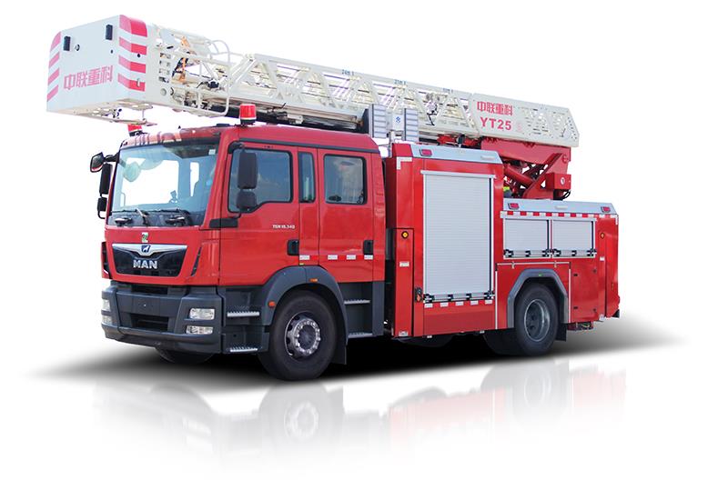 中联牌25米主战云梯消防车,结合云梯消防车与城市主战车的特点,功能和操作性更加贴近消防实战。装备先进的压缩空气泡沫系统,并可携带多种抢险救援器材及完善的照明系统,具备强大的灭火功能和高空救援能力,特别适用于城市消防灭火救援。