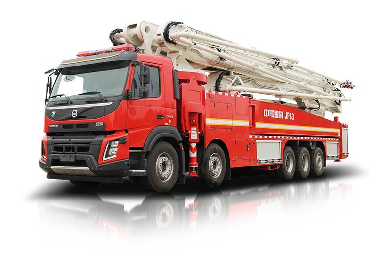 中联重科JP63型大跨距举高喷射消防车,结合国内外消防车的先进理念和消防实战创新设计而成,具备强大的灭火功能,整车性能优越,快速高效,操作性、安全性及智能化控制水平处于国际先进水平。