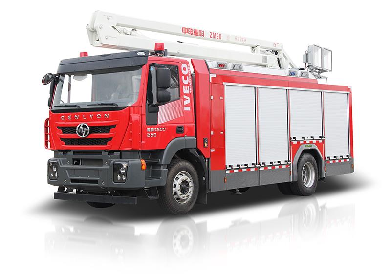 中联牌ZM90A5照明消防车是中联重科具有自主知识产权的新一代照明消防车,具有发电功率大、照明强度高、照明高度高、作业范围大、抗风能力强、智能化程度高等优点,整车技术水平高,拥有近二十项专利及多项创新技术。